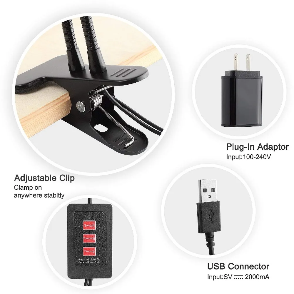 HIGH QUALITY Grow Light18/27W Dual Head Timing 36 LED Levels Plant Grow Lights for Indoor Plants with Red/Blue S