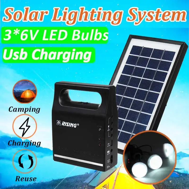 Solar Power Panel Generator Kit 6V USB Charger Home Solar Lighting System with 3 LED Bulbs Light In